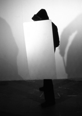 Ausgangspunkt der Arbeit ist Dokumentationsmaterial von Demonstrationen während den Jugendunruhen 1980 in Zürich. Die Positionen der Demonstrierenden werden aus ihrem Kontext isoliert und in einem neutralen Raum nachgestellt. Dadurch wird die körperliche Präsenz und der ästhetische Ausdruck verstärkt.