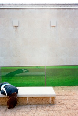 The project examines architectural spaces and the way they are designed and constructed such as in modern museums and in public buildings. Within architecture, which is mainly created for cultural and social uses, you can find unusual dimensions, materials and textures. I situate myself in these architectures and arrange my body as a sculptural element of the space. In public and semi-public spaces, I depict existing forms and architectural details, adapt, complete or accentuate them. The photographs do not show me as a subject, but my body as a sculptural element, moving and positioning itself in space and hereby questioning the functionality and the meaning of the designed space.