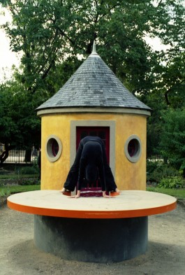 Grundlage des Projekts ist die Beschäftigung mit dem vom Menschen entworfenen, konstruierten und gebauten Raum, wie man ihn in modernen Museen und öffentlichen Gebäuden findet. In dieser für die Kultur und für die soziokulturellen Formen geschaffenen Architektur finden sich ungewöhnliche Dimensionen und Materialien, Möblierungen und Applikationen. Ich situiere mich performativ in unterschiedlichen Architekturen und arrangiere meinen Körper dort als räumliches, skulpturales Element. Im öffentlichen und halböffentlichen Raum greife ich bestehende Formsprachen und architektonische Details auf und passe mich diesen an, ergänze oder betone sie. Im Vordergrund stehe dabei weniger ich als Subjekt, das sich in einer Architektur bewegt, als vielmehr mein Körper als skulpturales Element, das sich im Raum positioniert. Die Verschiebung und Umdeutung der Funktionalität und der Wahrnehmung des Raumes spielen dabei eine wichtige Rolle.